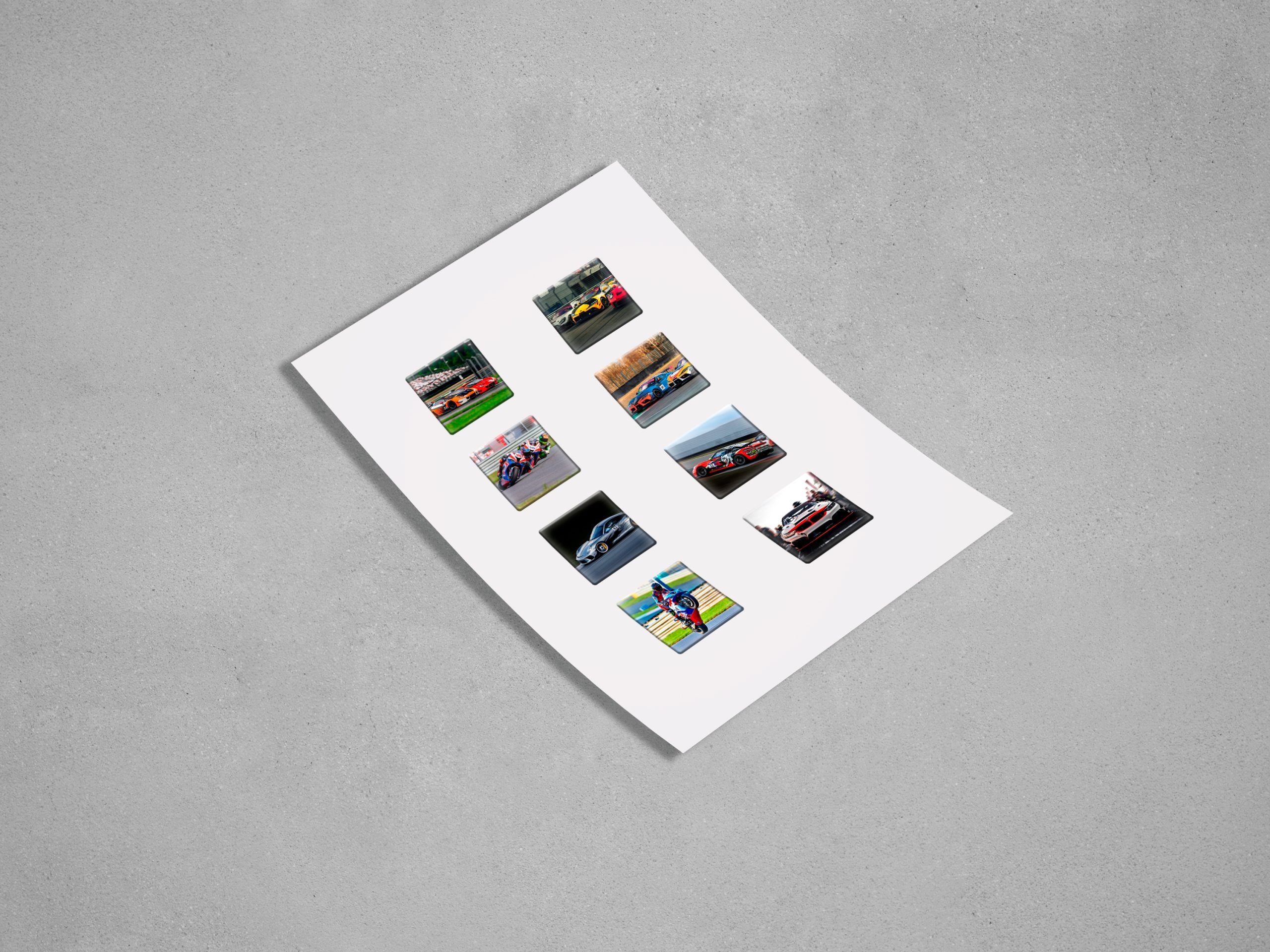 6 объёмных 3D-наклеек с гоночными машинами для телефона. Рельефная поверхность, стойкий клей.